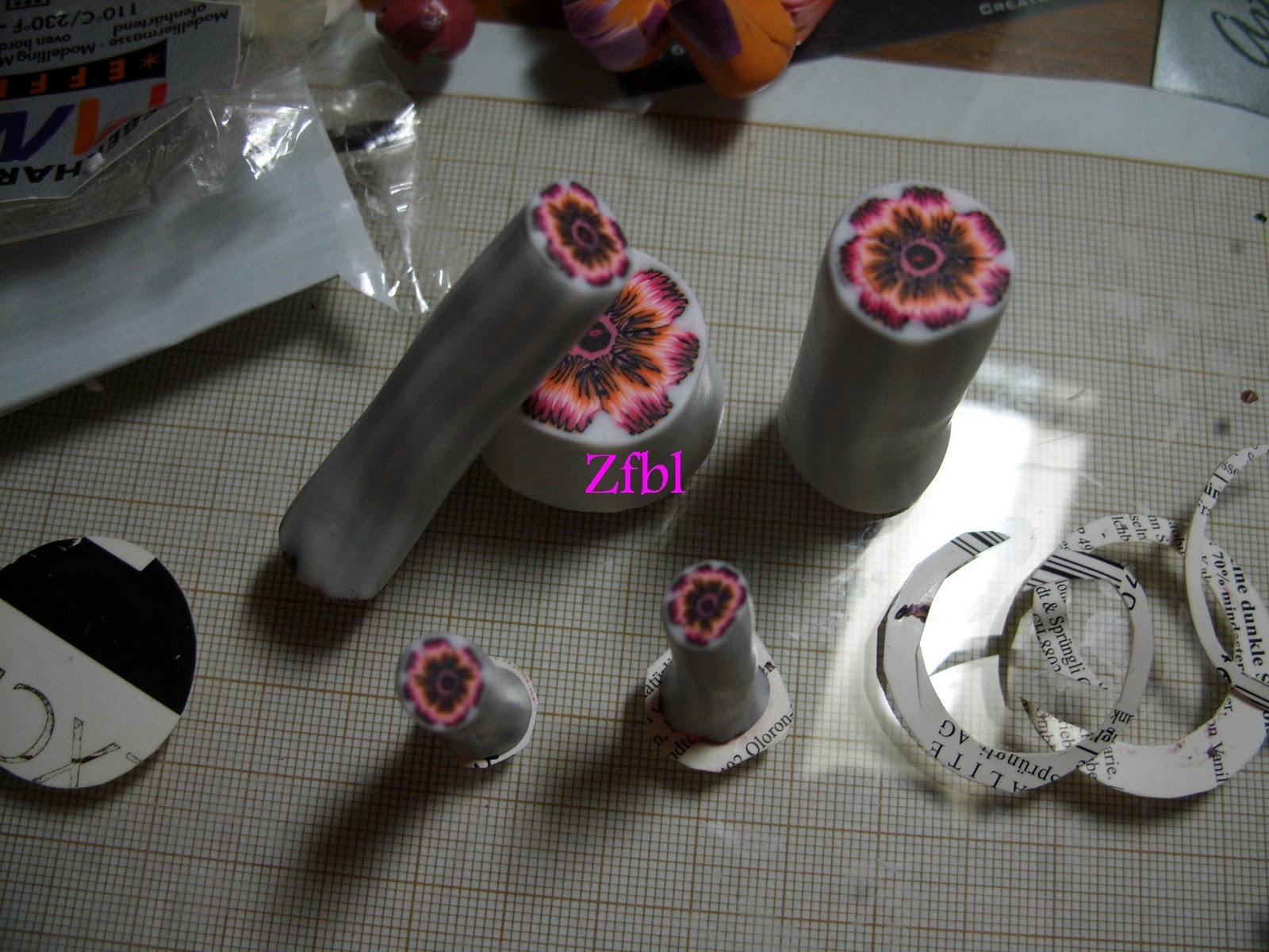 tranches de canes-fleurs , emperlées et douillettement blotties dans la feutrine et le tulle!!!